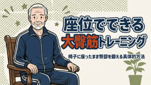 椅子を使った日中の座位筋トレも組み合わせたい人は、座ったままできる高齢者の筋トレが参考になる。