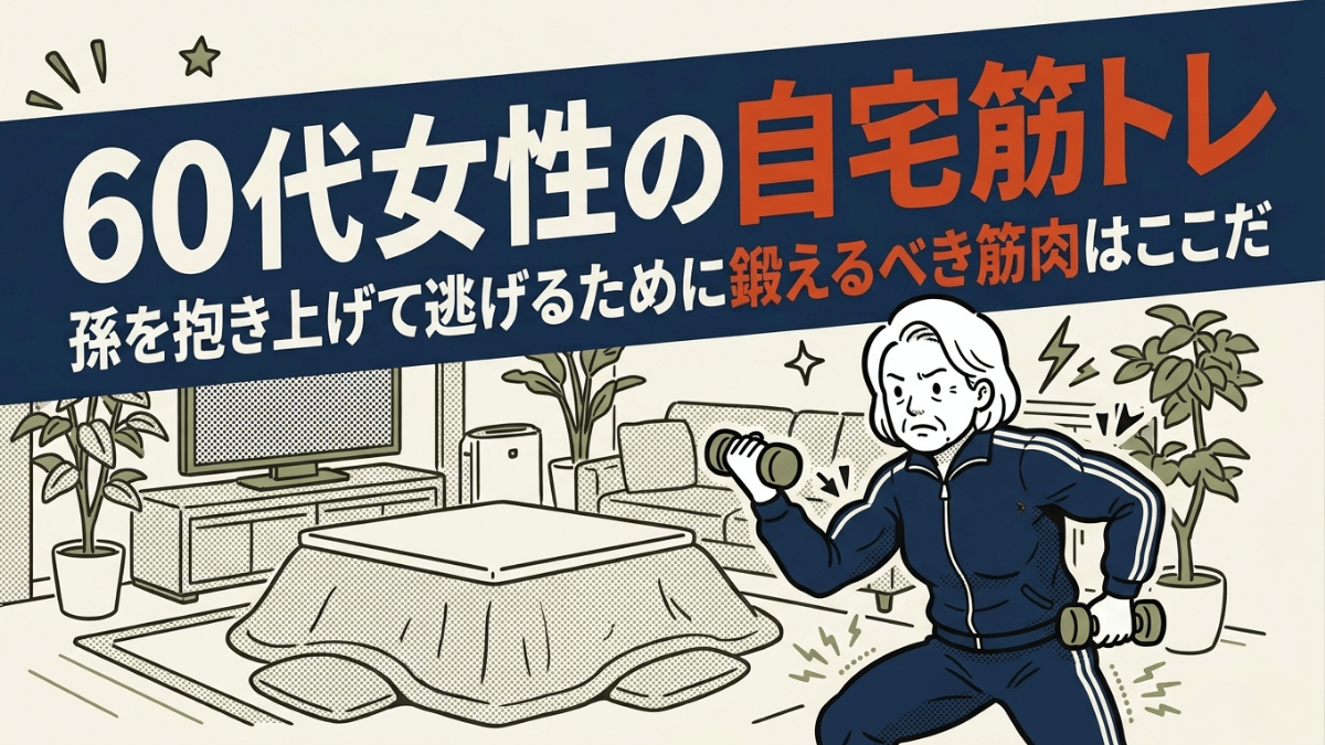 地震が起きた瞬間を想像してほしい。孫が泣いている。抱き上げて、外に出なければならない。その場面で「足が動かない」「腕に力が入らない」では、守れるものも守れなくなる。 60代の女性が筋トレをする理由は、細くなるためでも、若く見せるためでもない... -