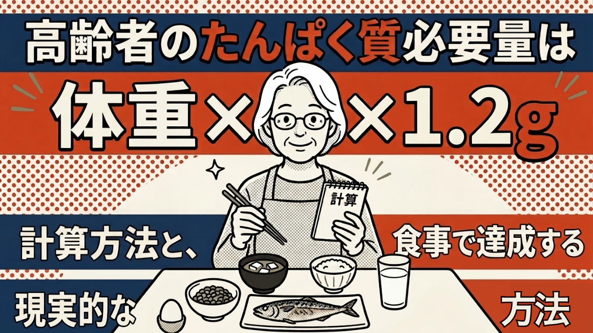 この記事では、高齢者のたんぱく質必要量を体重別に計算する方法と、今の食事で足りているかを確認する手順、そして1日の食事で現実的に達成するための方法を順番に解説する。