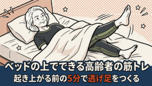 寝姿勢でできる種目(ヒップリフト・クラムシェル・デッドバグなど)は寝たままできる高齢者の筋トレ5選に詳しくまとめている。